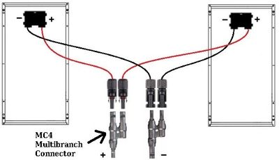 Multi-branch connectors make it easy to do a parallel connection which comes in especially handy whenever wiring a PWM charge controller. PWM charge controllers such as the C-40 & C-60 are more efficient when the solar panels are wired close to the nominal voltage in a parallel configuration to achieve charging through increased amperage.
